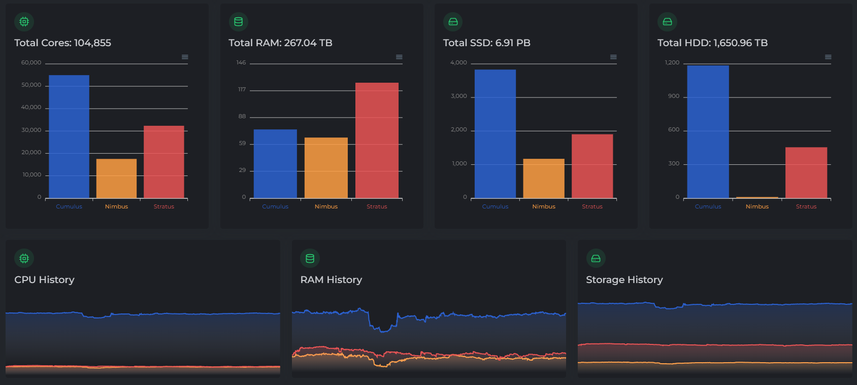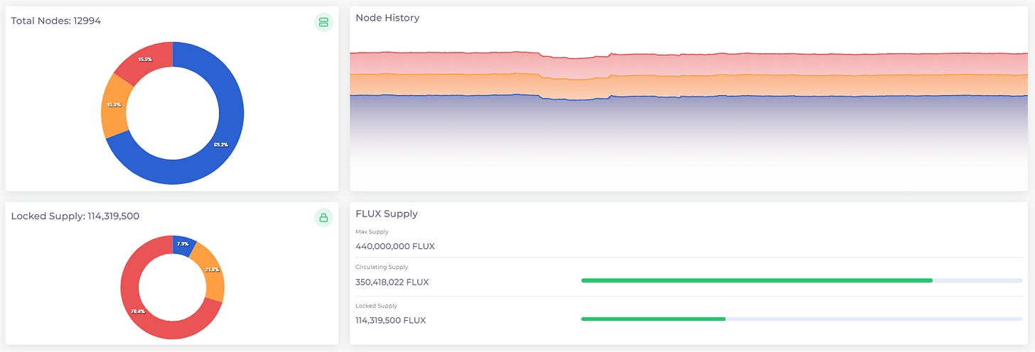 Currently (2023/1), Flux has a computational network of around 15,000 decentralized nodes, distributed globally with more than 108,000 CPU cores, 288 terabytes of RAM, and 6.7 petabytes of storage. That makes Flux the largest decentralized network in the world!