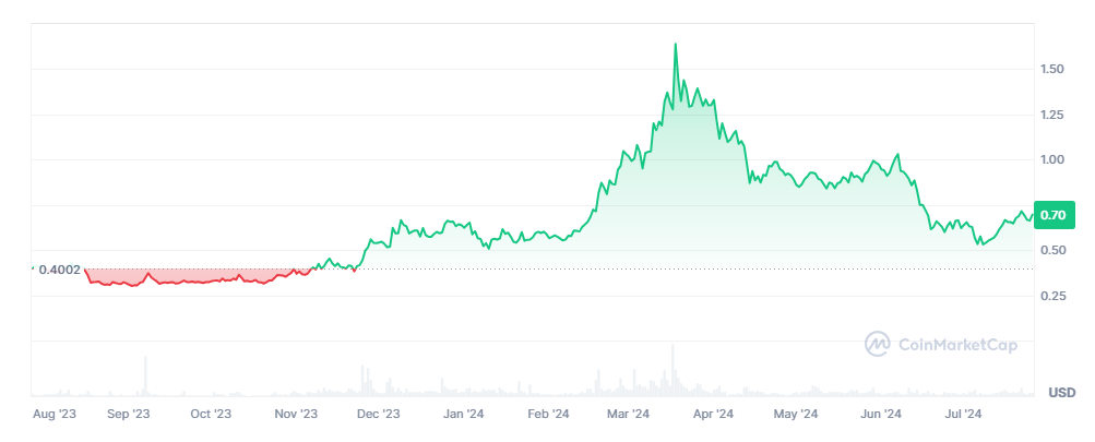 As of July 27th, 2024, with a 24-hour trading volume of $8,718,736 USD. Flux is up 5.97% in the last 24 hours.